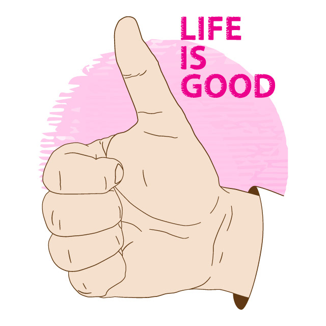 Hand showing thumbs up. Conceptual illustration on the theme of life is good. Vector elements for design, icon, logo or a fashion print.